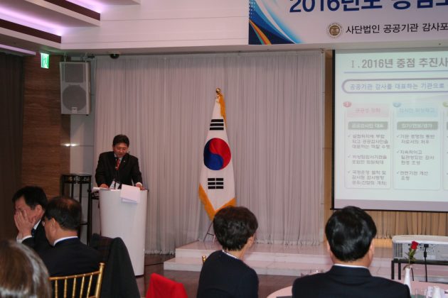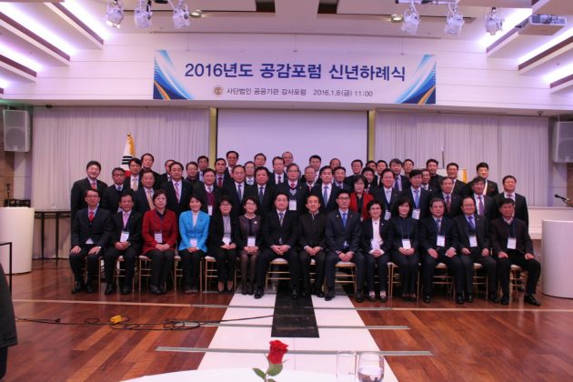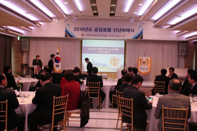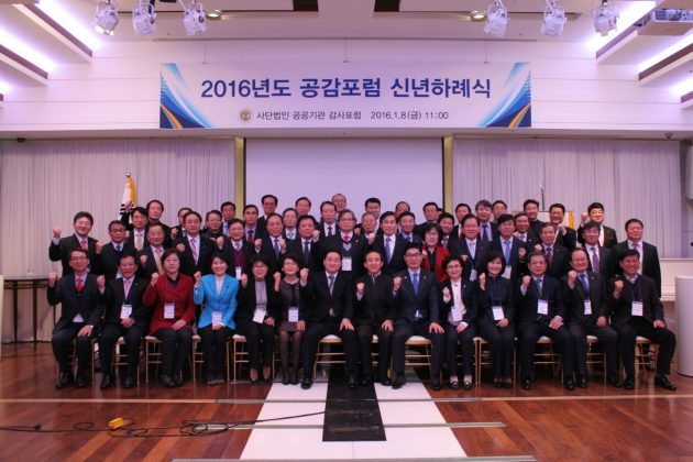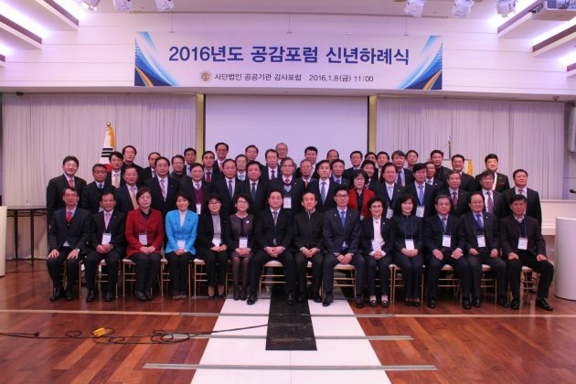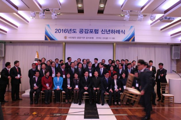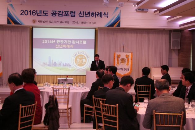 2016년 제2기 정기총회 개최 ○ 일 자 : 2016. 1. 8(금) ○ 장 소 : 엘타워 엘하우스홀(8F)(서울 서초구 양재동) ○ 참석대상 : 공공기관 감사(위원) ○ 주요내용 – 감사원, 권익위 등 감사유관기관 및 포럼 회원 간의 신년하례 – 우수감사 공공기관 및 감사인 선정(안) 설명 – 2016년 1차 해외연수프로그램 안내 Album navigationPreviousPrevious album:창립총회NextNext album:2016년 제2기 정기총회 개최