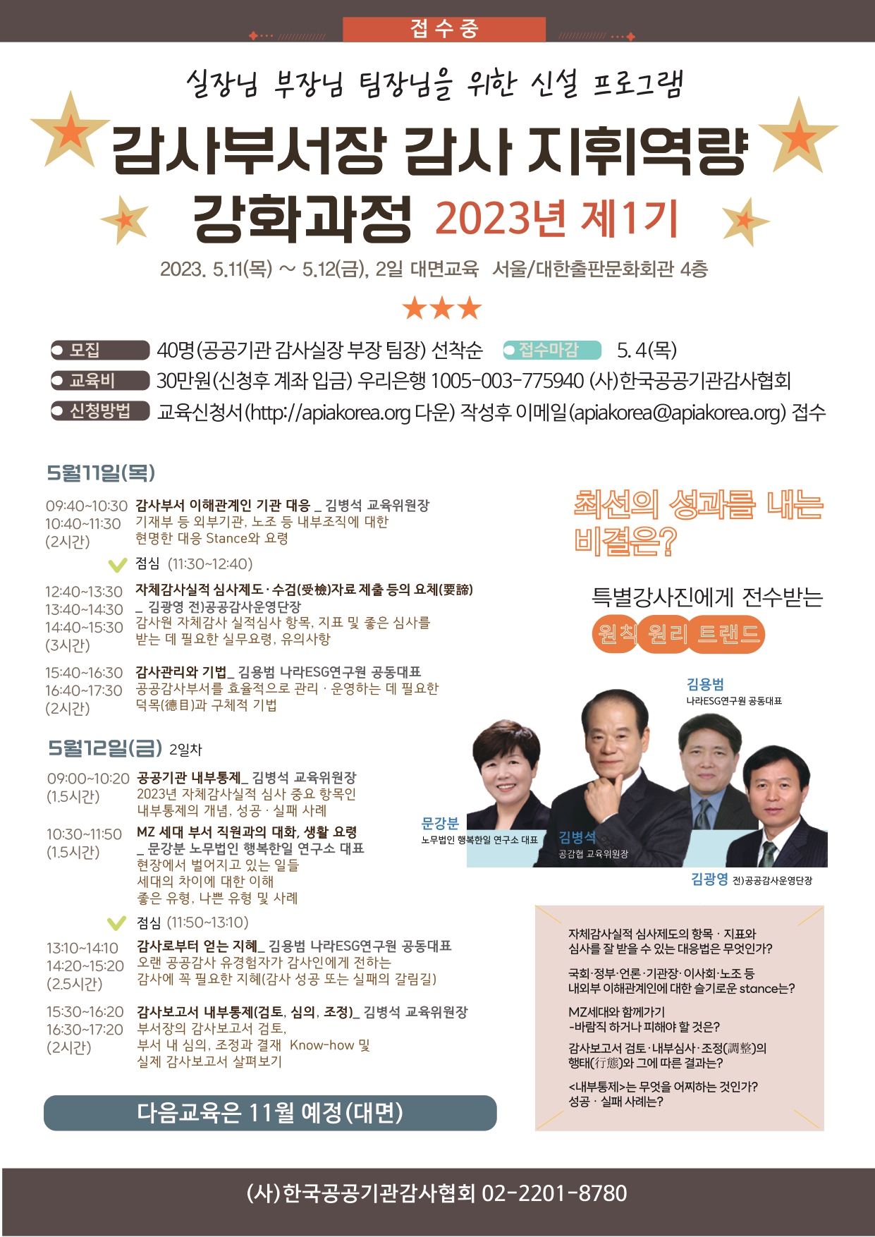 ○교육대상: 공공기관 감사실장, 부장, 팀장(선착순 40명)