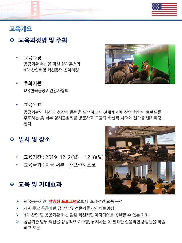 가. 교 육 명 : 공공기관 혁신을 위한 실리콘밸리 4차 산업혁명 혁신 동력 벤치마킹