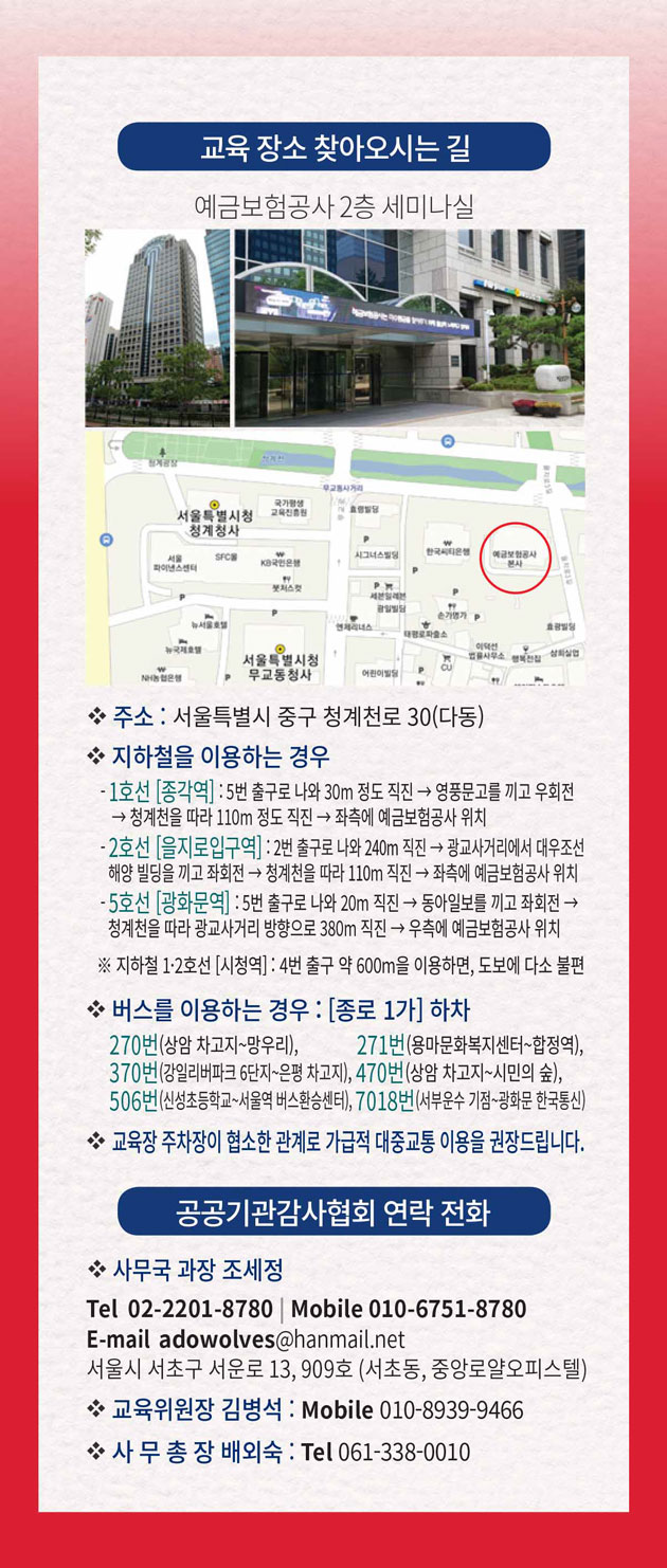 - 납부계좌 : 우리은행 1005-003-775940(예금주 : (사)한국공공기관감사협의회)