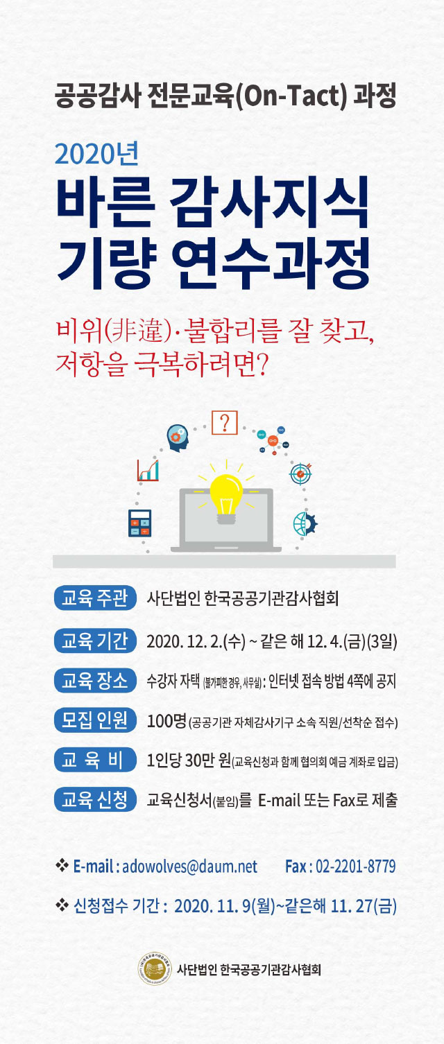 교육과정 : 2020년 바른 감사지식․기량 연수과정(붙임1. 참고)