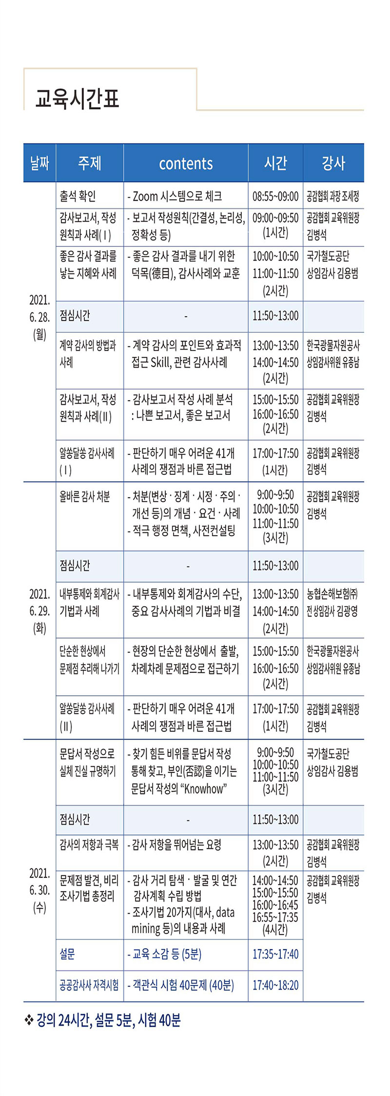 -교육대상자 교육시간 최대 24시간 인정 수료증 및 공공감사사 자격증 제공