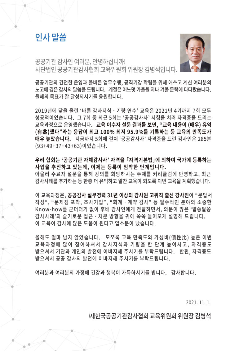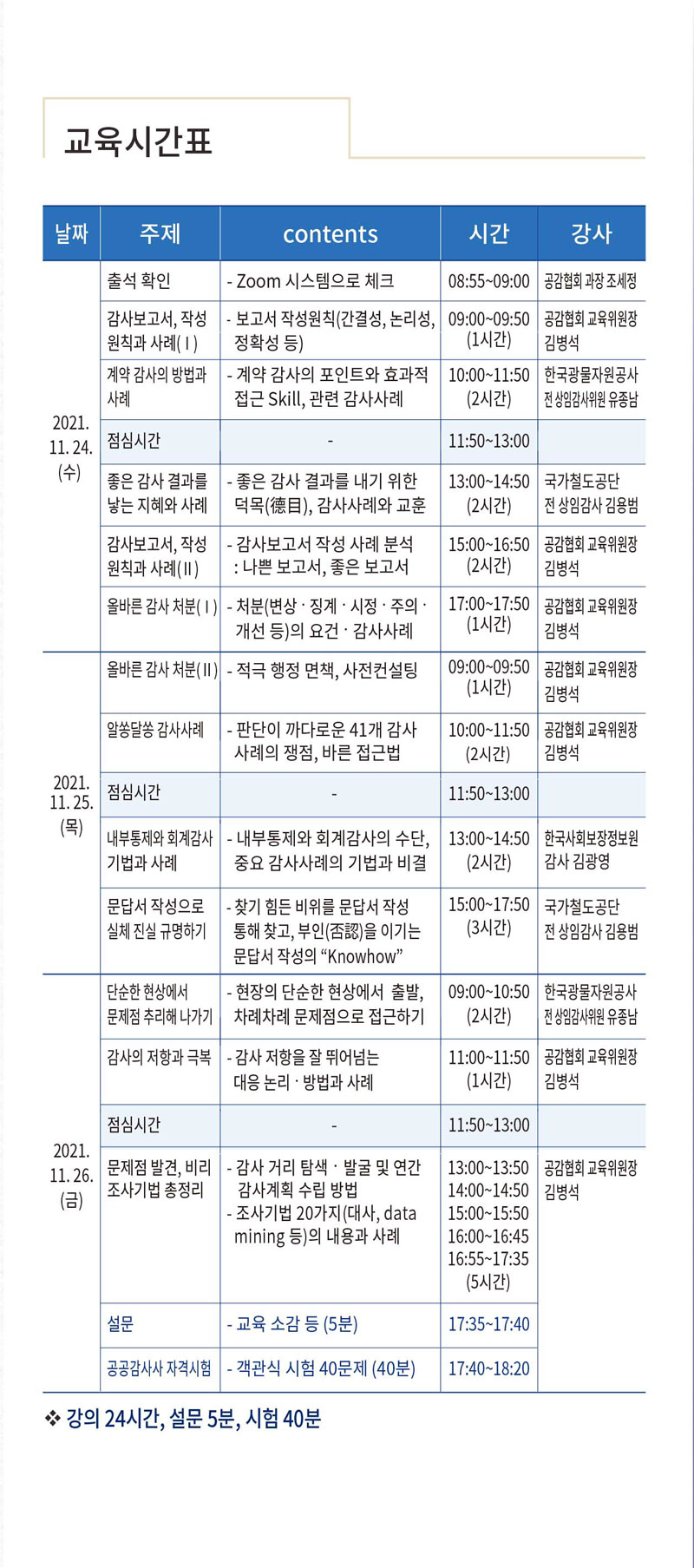 -교육대상자 교육시간 최대 24시간 인정 수료증 및 공공감사사 자격증 제공