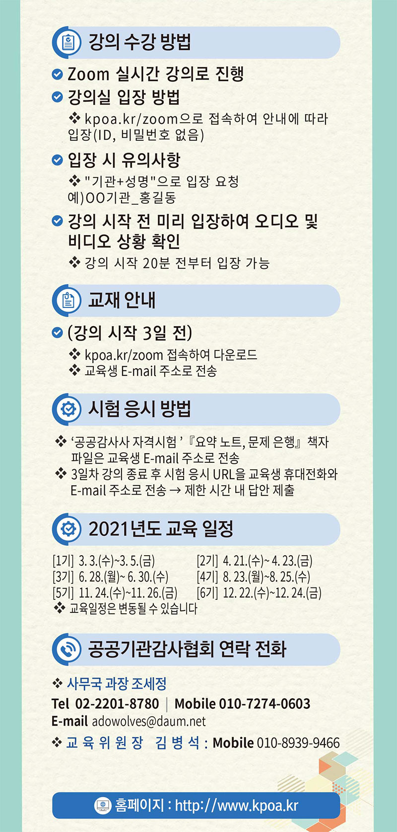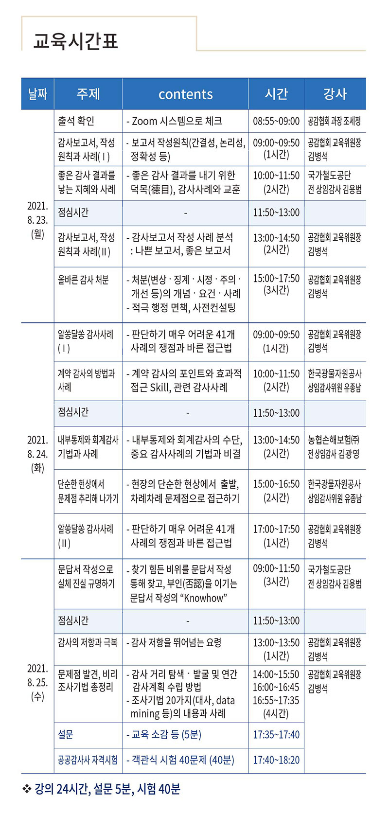 -교육대상자 교육시간 최대 24시간 인정 수료증 및 공공감사사 자격증 제공
