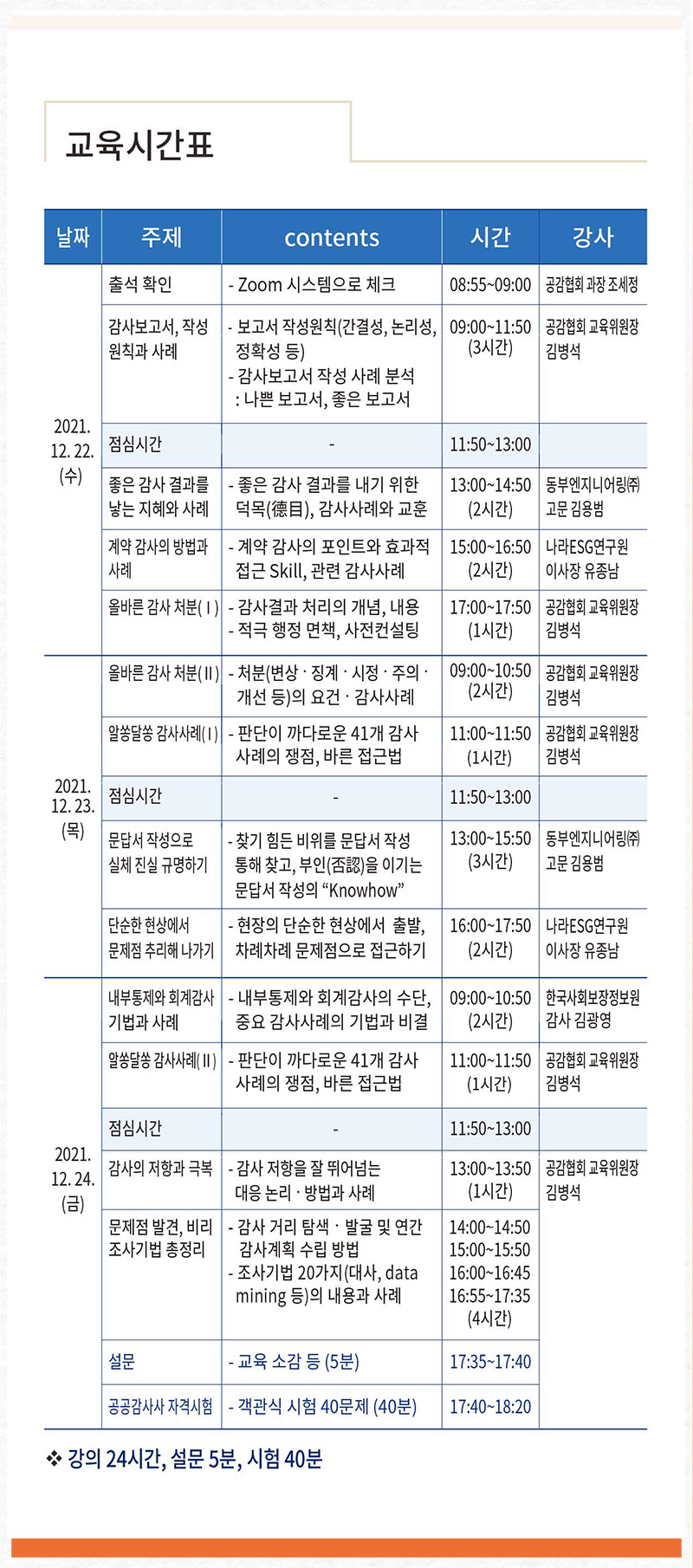 -교육대상자 교육시간 최대 24시간 인정 수료증 및 공공감사사 자격증 제공