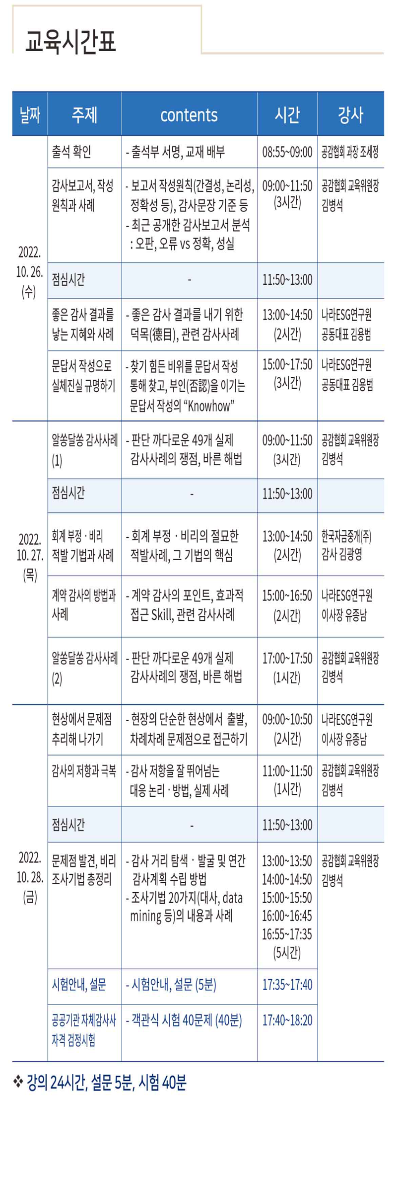 -교육대상자 교육시간 최대 24시간 인정 수료증 및 공공감사사 자격증 제공