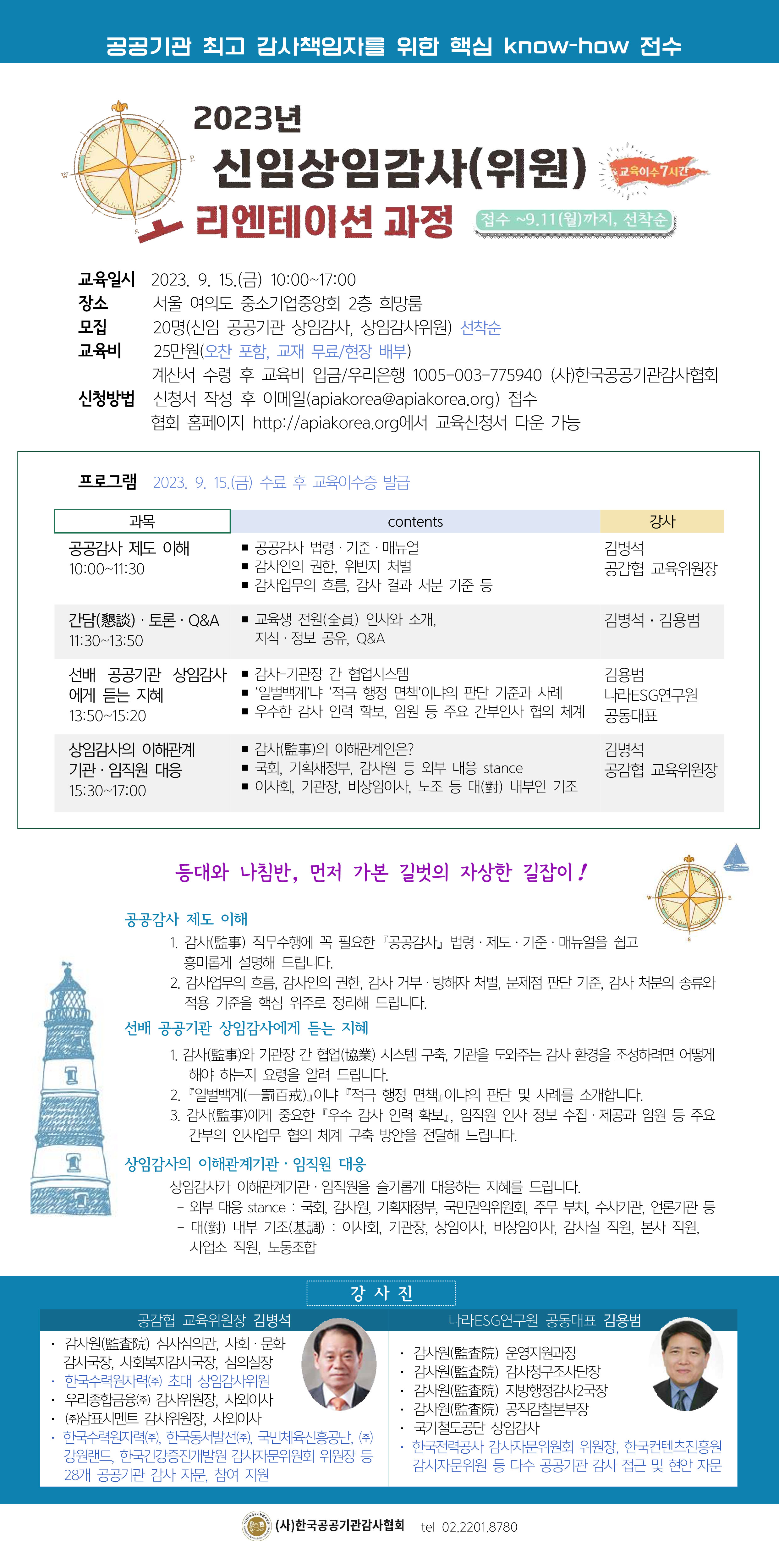 3. 본 과정은 대면교육으로 진행되며, 과정안에 오찬이 포함되어 있습니다. 새로이 취임하신 상임감사(위원)님의 많은 관심과 신청 바랍니다.
