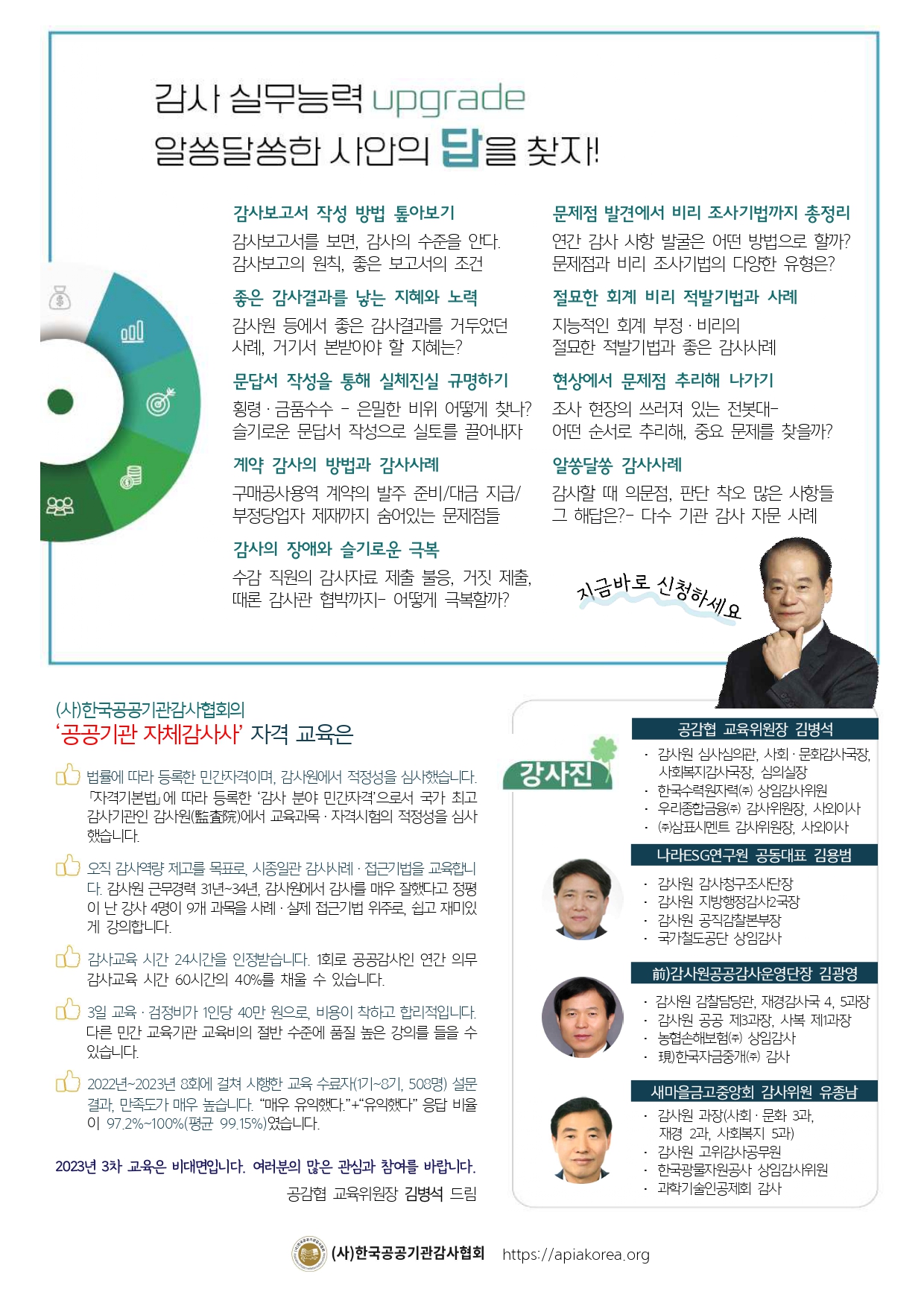 2. 2023년 제3기 「공공기관 자체감사사 자격검정 교육」 교육생을 다음과 같이 모집합니다.