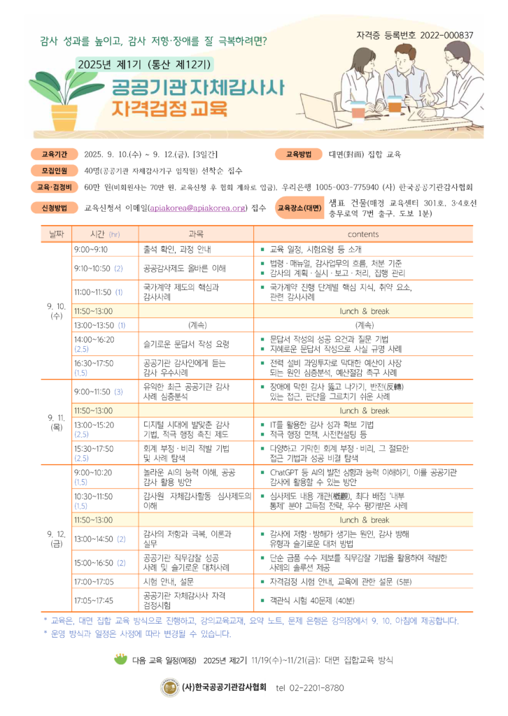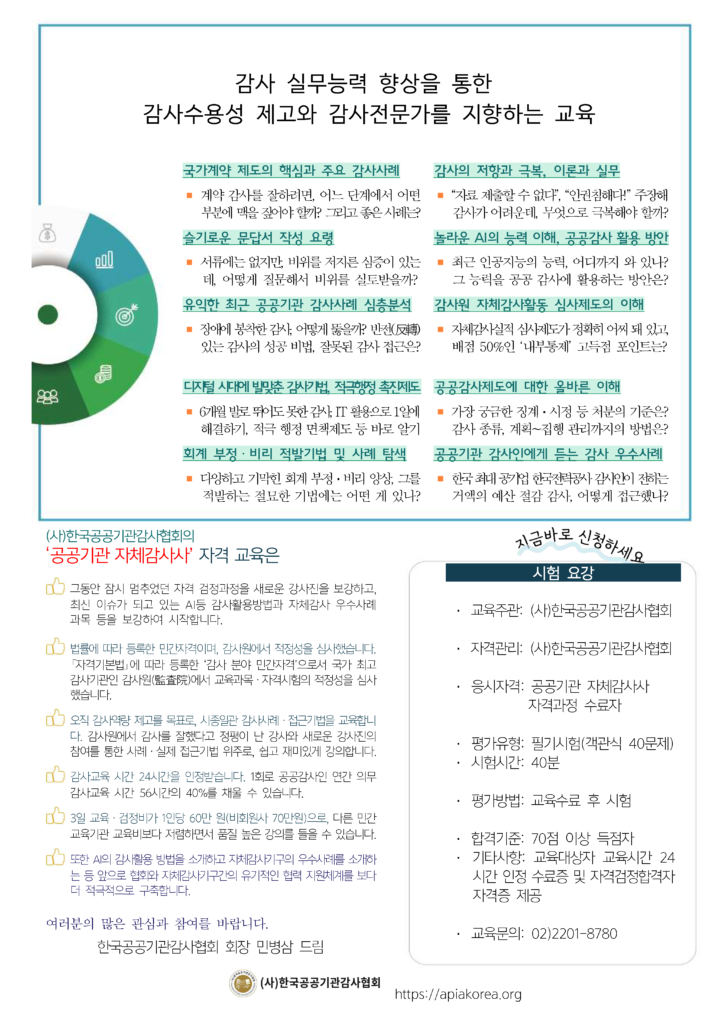 - 교육과정: 2025년 제1기 공공기관 자체감사사 자격검증 과정